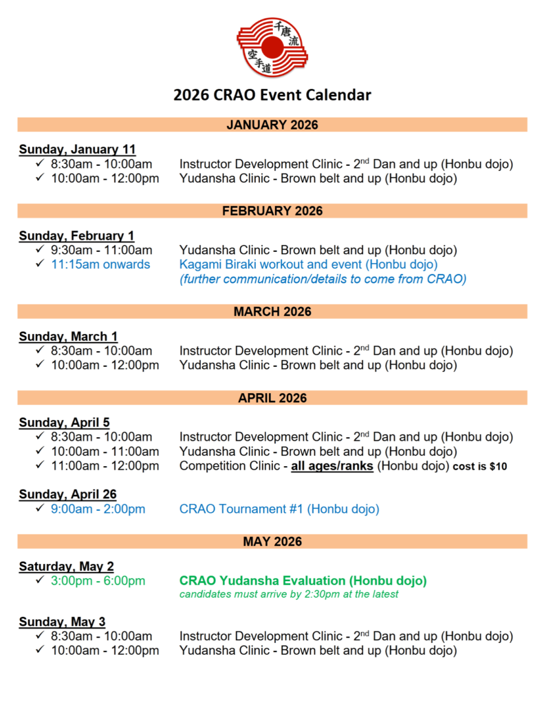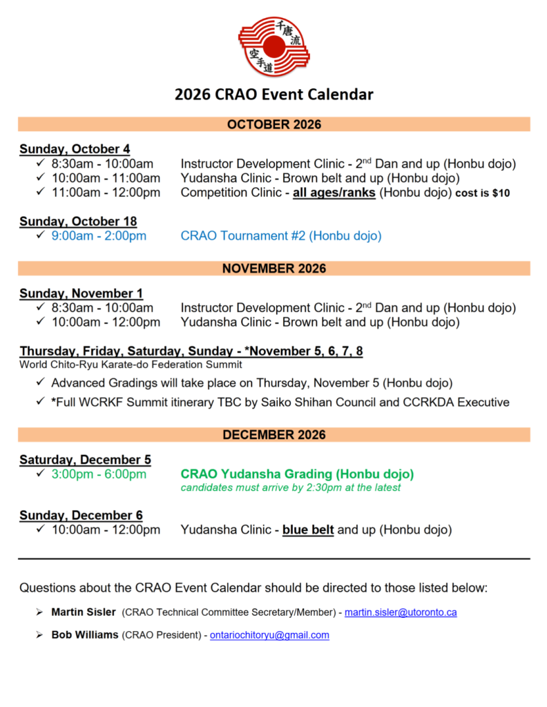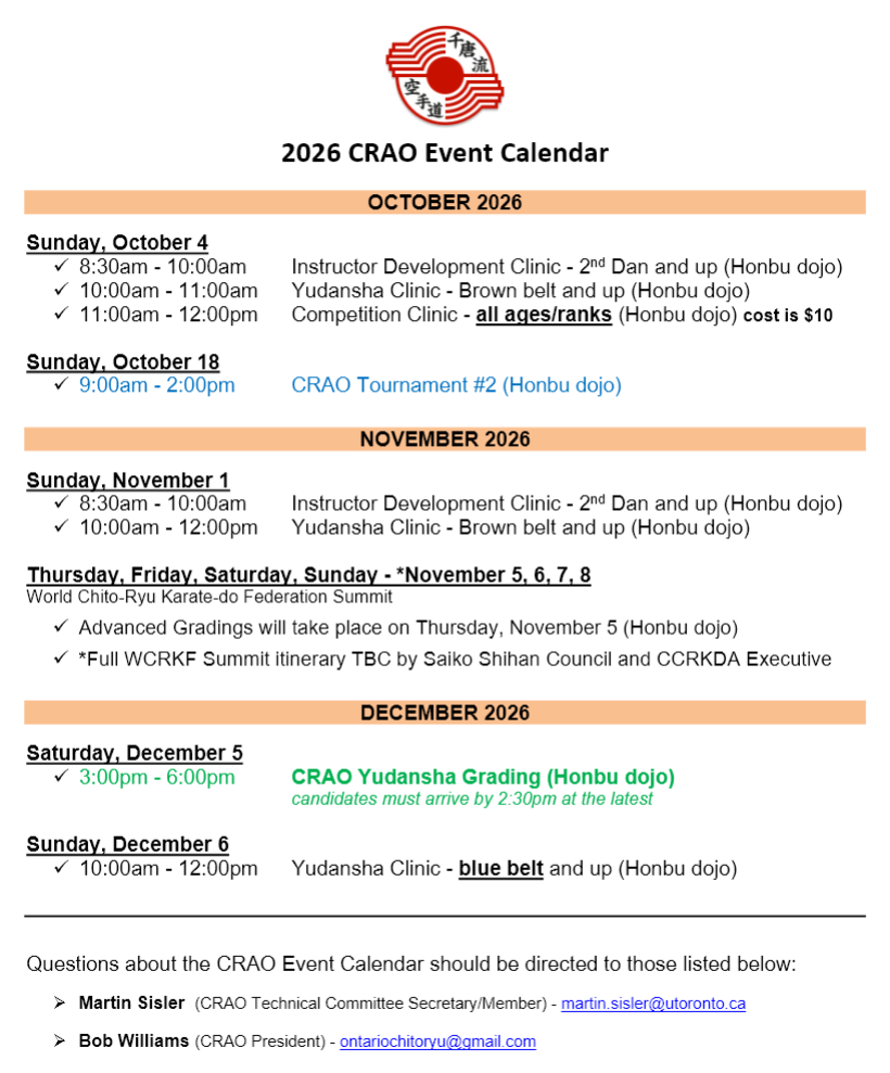 2026 CRAO Fall Advanced and Provincial Yudansha Evaluation